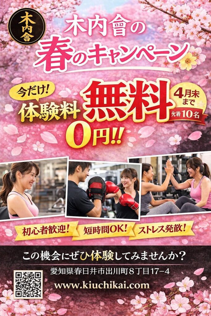 木内會春のキャンペーン🥊 2026年3月25日 kiuchikai 春からキックボクシングを習って見ませんか❓ やりたいな、そう思ったらまずは体験してみましょう😊✌️ バンバン問い合わせお待ちしてます👍